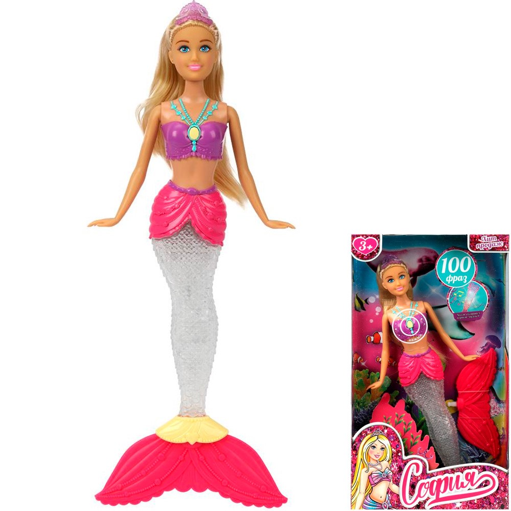Кукла Карапуз AN99288M-PL2-S-BB София 29см, Русалка, пласт. хвост, 100 фраз, свет, акс