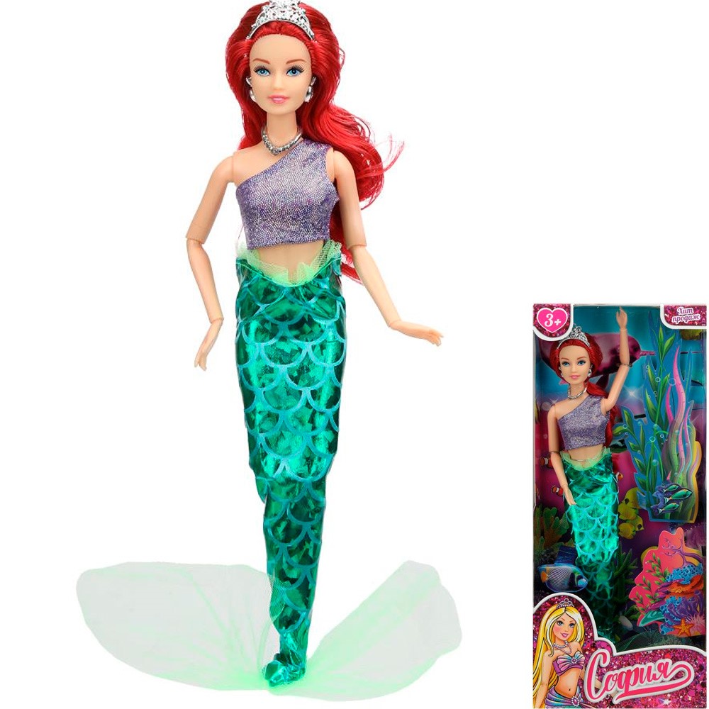 Кукла Карапуз M2-S-JP София Русалка 29 см, ткан. хвост, акс., руки и ноги сгиб.