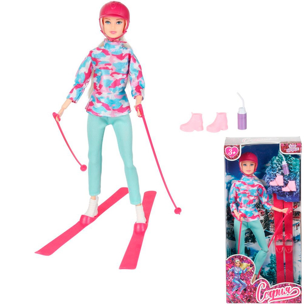 Комплектация: кукла - 1 шт, каска, бутылка, пара обуви, лыжи, лыжные палки