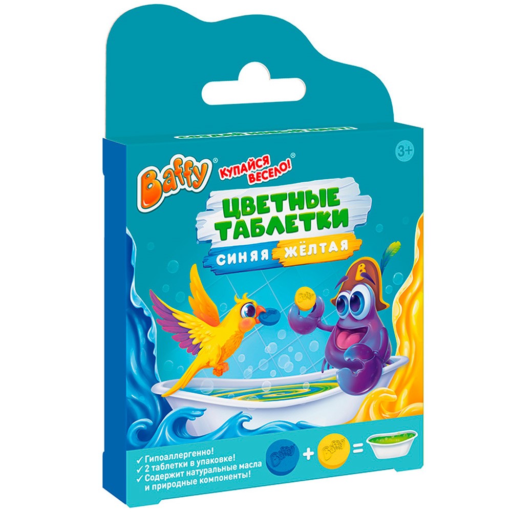 Наполните ванну теплой водой. Рекомендуемое количество воды 30 литров и пустите таблетку (синюю или желтую). Играйте и развлекайтесь в ванной. Добавьте оставшуюся таблетку (синюю или желтую) и получите новый цвет! Играйте и развлекайтесь.