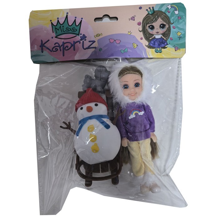 Кукла малышка Miss Kapriz MK55878D с санками и снеговиком в пак.