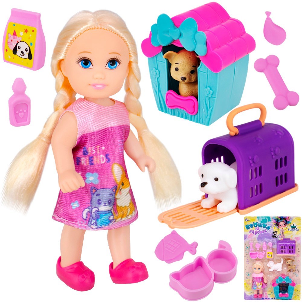 Комплектация: кукла - 1 шт, игровые аксессуары - 6 шт, фигурки животных - 2 шт, домик - 1 шт, переноска - 1 шт