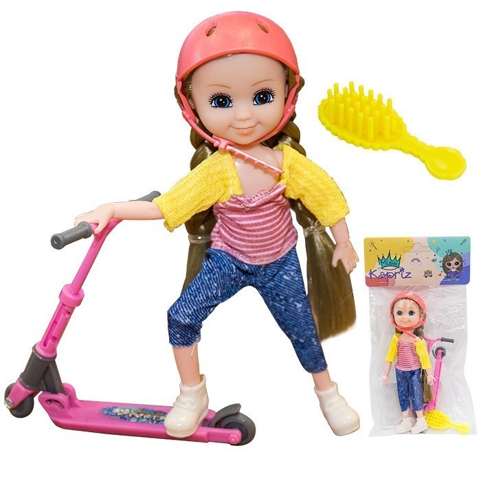 Комплектация: кукла – 1 шт + набор аксессуаров (расческа, самокат, шлем)