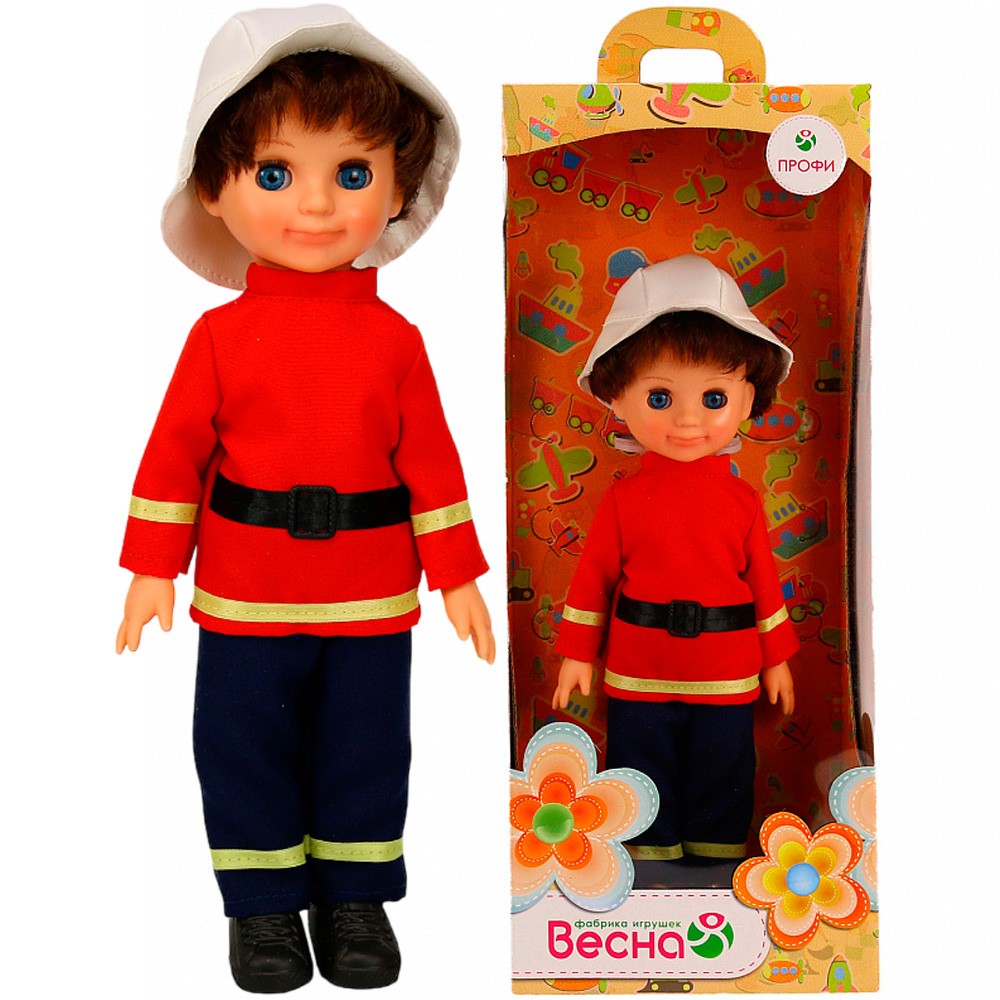 Кукла-мальчик Пожарный подойдет для различных сюжетно-ролевых игр, познакомит ребенка с профессией огнеборца и правилами пожарной безопасности. Комплект одежды куклы состоит из шлема пожарного, кофточки с ремнем, брюк, кроссовок и трусиков, ткань - х/б. Ручки и голова куклы выполнены из пвх-пластизоли, тело и ножки - из пластика, волосы прошитые из нейлона, глаза вставные закрывающиеся, ручки и ножки подвижны. Игрушку можно садить, переодевать, придавать ей различные положения, что разнообразит игровые сюжеты. Звуковые устройства отсутствуют.