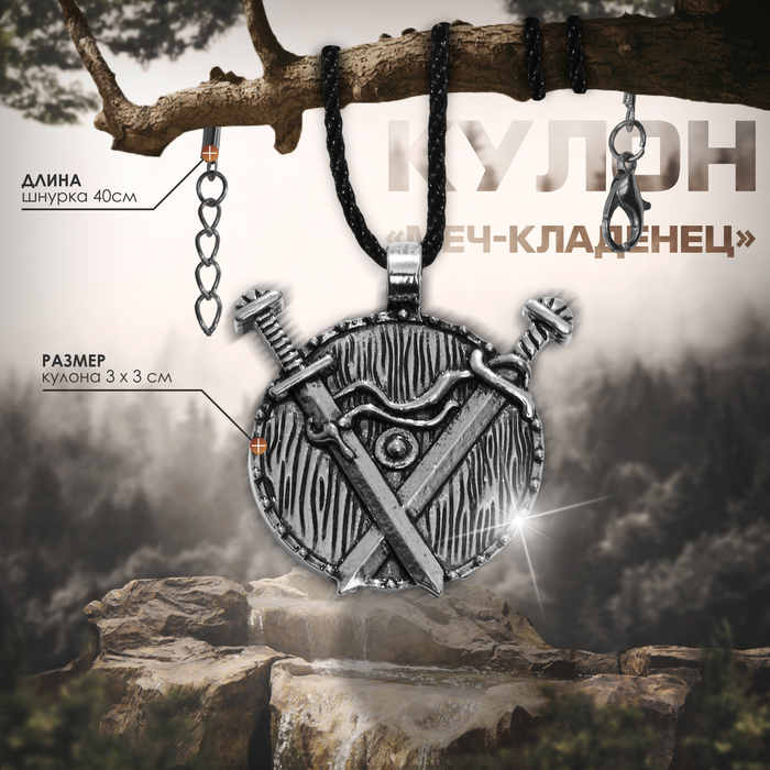 Кулон-амулет «Меч-кладенец» на шнурке, цвет чернёное серебро, 40 см