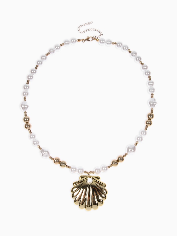 Кулон на жемчужных бусах «Ракушка», белый в золоте