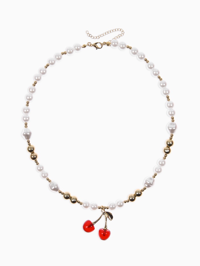 Кулон на жемчужных бусах «Вишня», белый в золоте