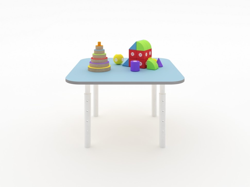 Квадратный растущий стол из коллекции мебели «НЕГА» с телескопическими ножками и плавными линиями обеспечивает безопасное перемещение детей для игровых зон малышей. Особое внимание уделяется безопасности: стол оборудован стабильными ножками, исключающими