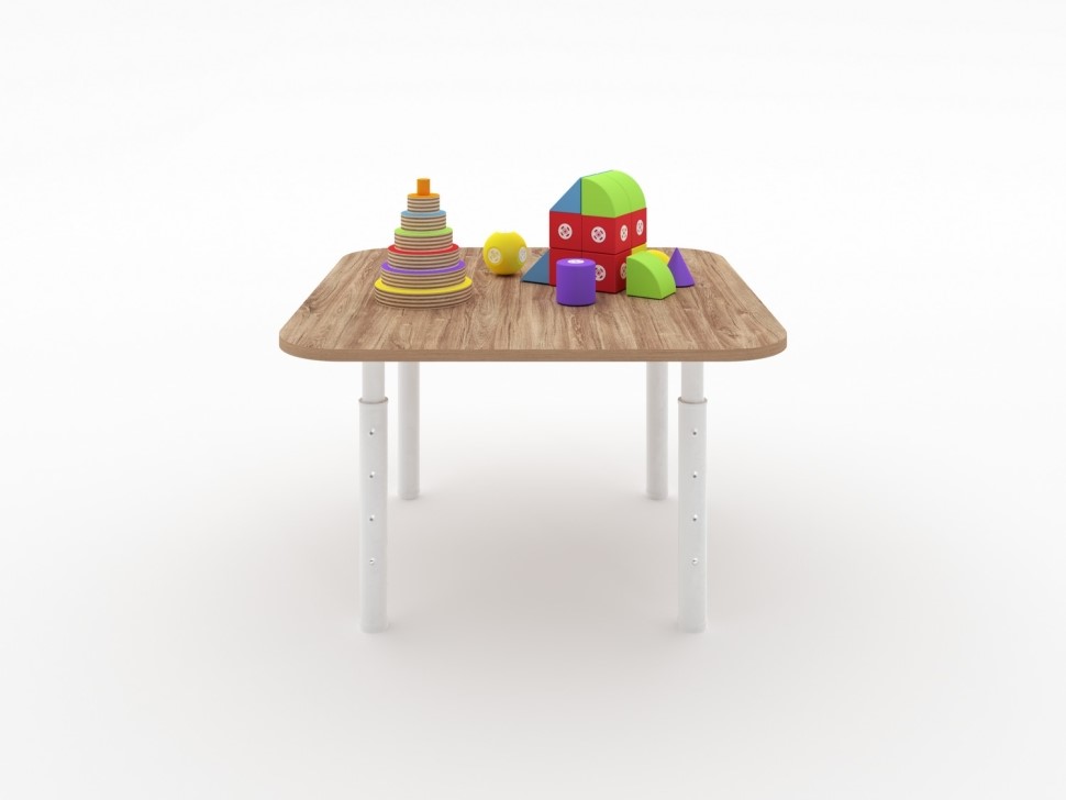 Квадратный растущий стол из коллекции мебели «НЕГА» с телескопическими ножками и плавными линиями обеспечивает безопасное перемещение детей для игровых зон малышей. Особое внимание уделяется безопасности: стол оборудован стабильными ножками, исключающими