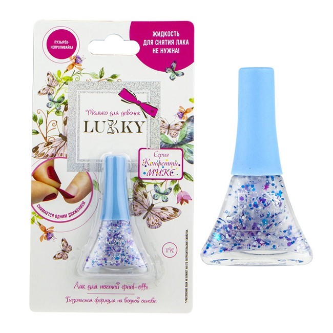 Лак для ногтей Конфетти-микс фиолетовый,белый, голубой со звёдочками 5,5 мл Т16753 LUKKY на блистере