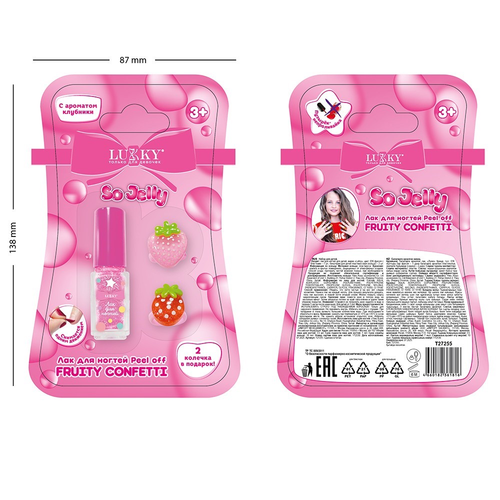 Лак для ногтей peel off с блёстками 3,5мл,фуксия,аромат клубники,2 колечка Т27255 Lukky