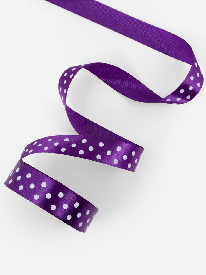 Глубокий фиолетовый оттенок этой атласной ленты с контрастным горошком придает проектам стиль и индивидуальность. Ее насыщенный цвет и игривый рисунок работают там, где нужно создать настроение творчества и яркой самобытности — в скрапбукинге, упаковке подарков и handmade-аксессуарах.