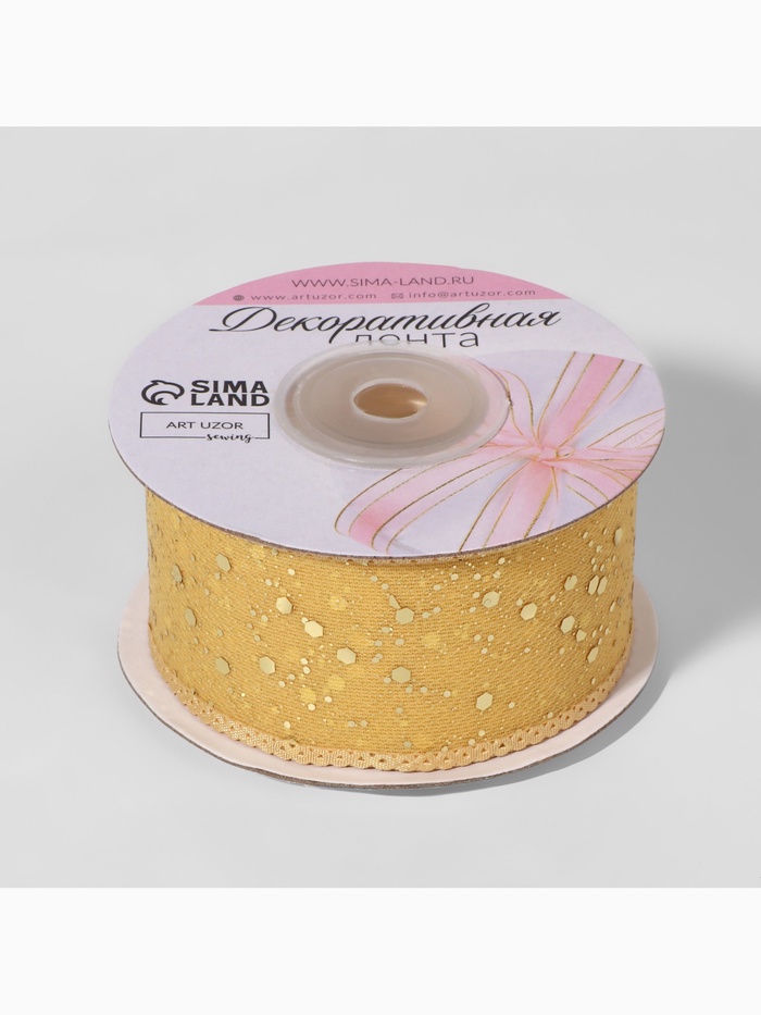 Лента декоративная, с глиттером, 38 мм, 9 ± 0,5 м, цвет золотой