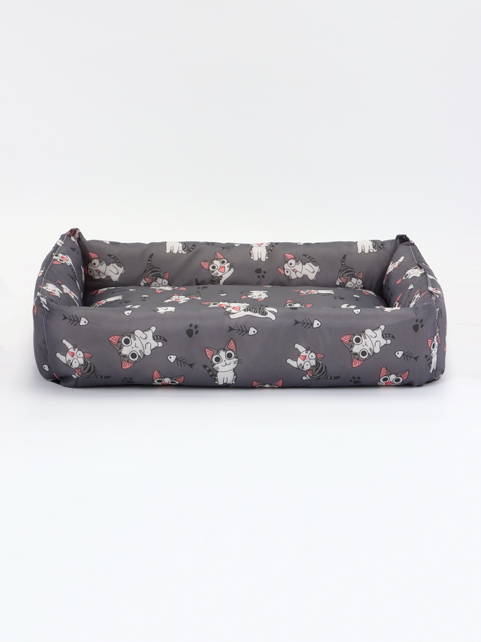 Просторный островок для комфортного отдыха. Большая лежанка для кошек и мелких собак — это увеличенная площадь для питомцев, любящих свободное пространство. Серая прямоугольная модель с высокими бортиками подходит для животных крупных пород и тех, кто предпочитает спать растянувшись во весь рост.