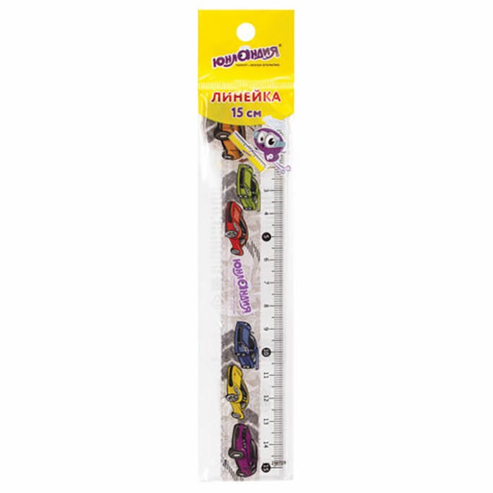 Линейка 15 см пластик Машинки фигурная 210729 Юнландия