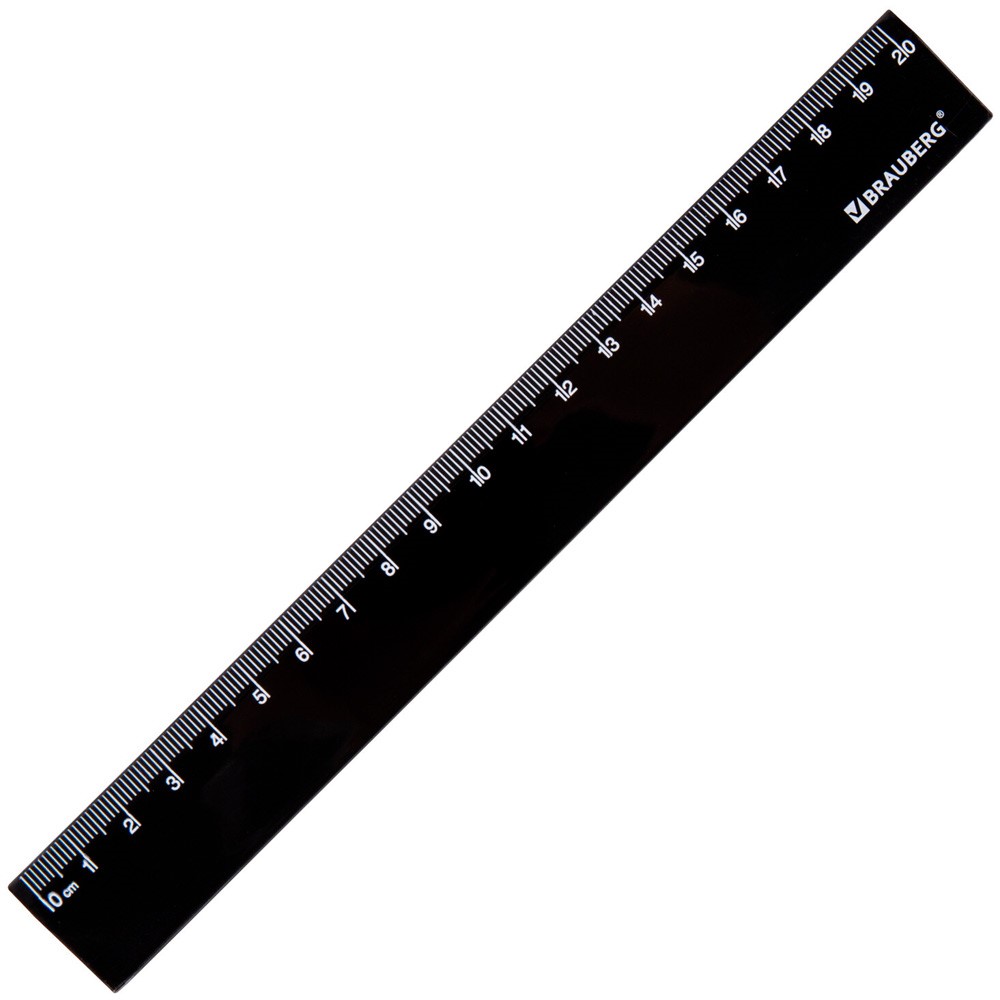 Линейка 20 см пластиковая BRAUBERG, непрозрачная, черная, 210775