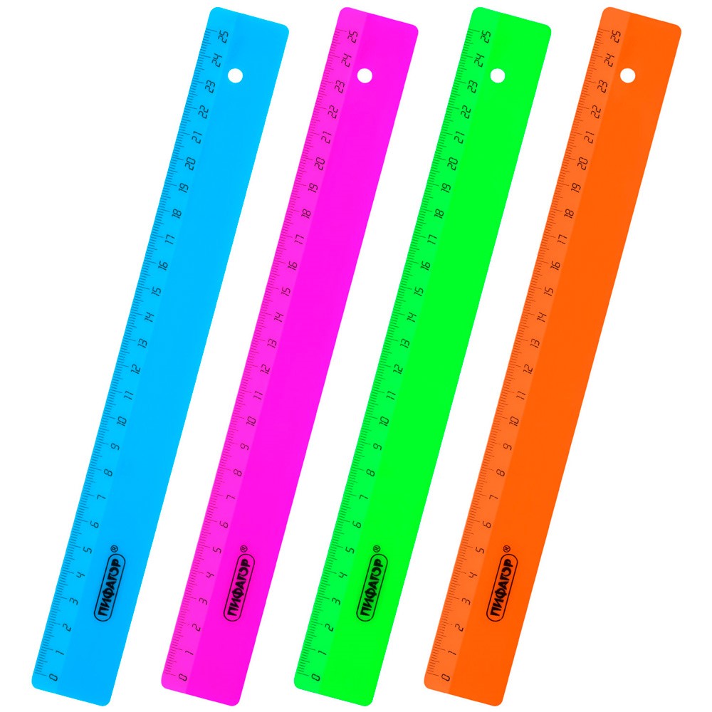 Линейка 25 см пластик ПИФАГОР, непрозрачная, неоновая, ассорти, 210790