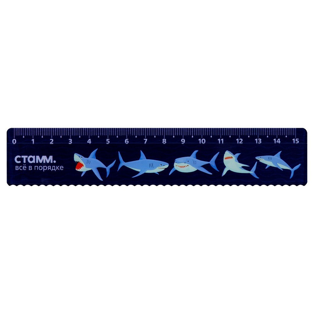 Линейка пластик 15см СТАММ Акулы с волнистым краем, 366430