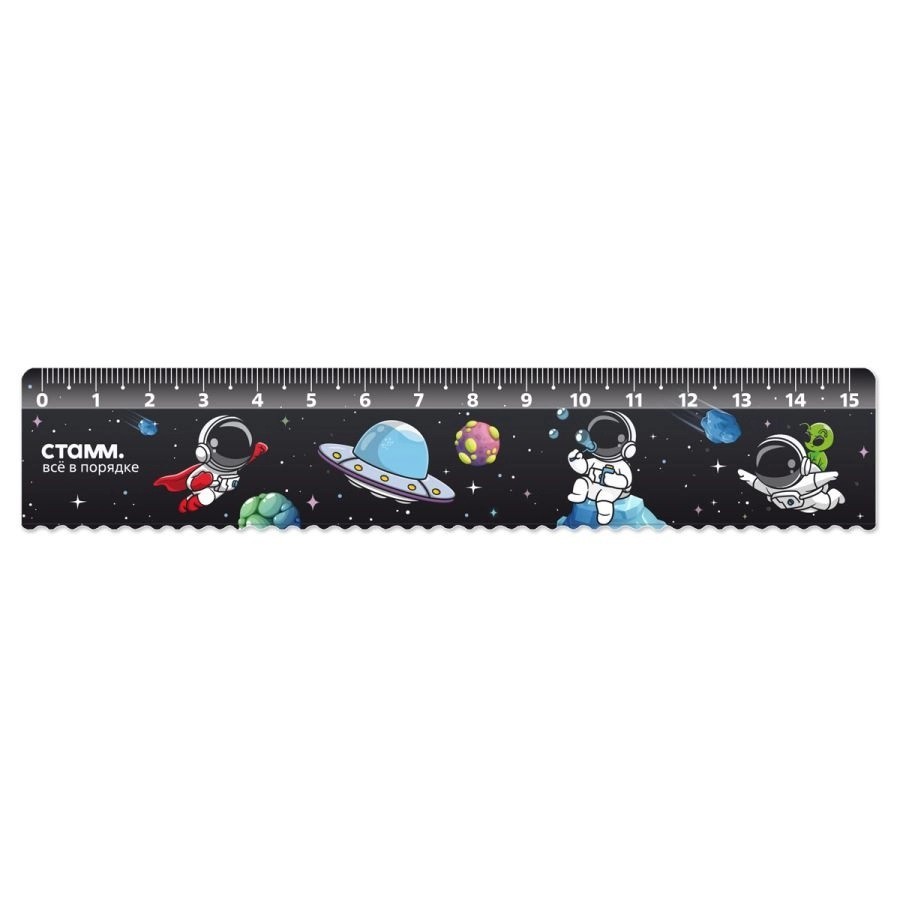 Линейка пластик 15см СТАММ Космонавты с волнистым краем, 366431