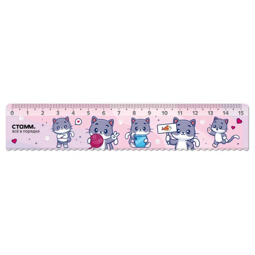 Линейка пластик 15см СТАММ Котики с волнистым краем, 366425