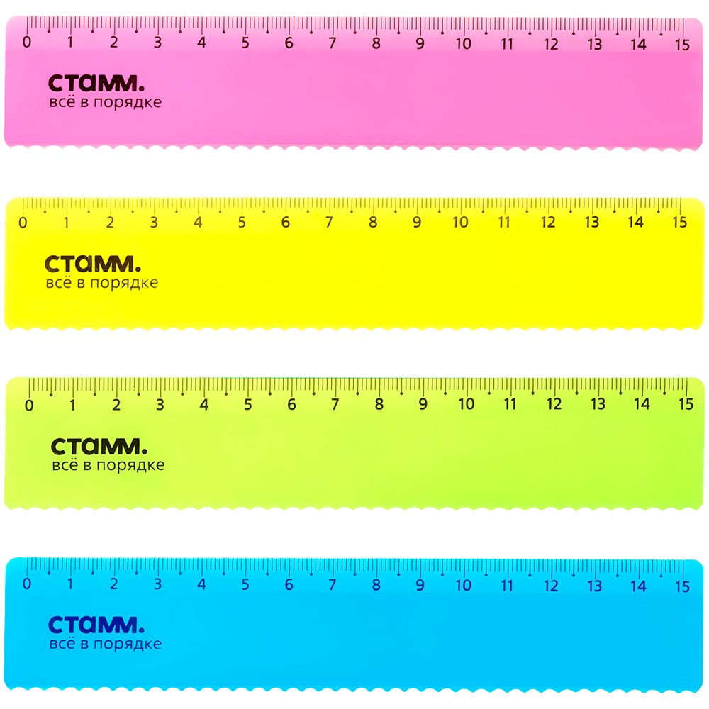 Линейка пластик 15см СТАММ с волнистым краем, прозрачная, неоновые цвета, ассорти 351446