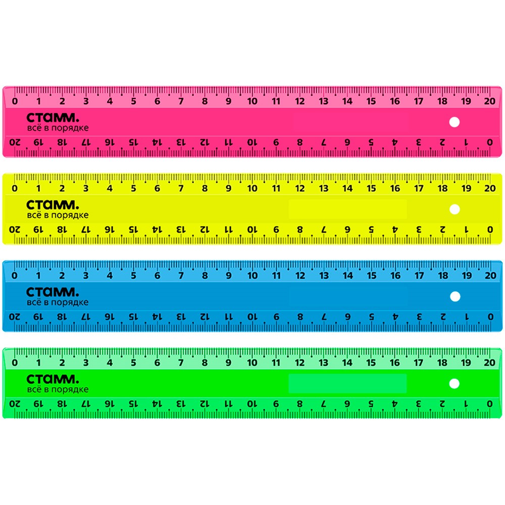 Линейка пластик 20см СТАММ 2 шкалы, непрозрачная, неоновые цвета, ассорти351472