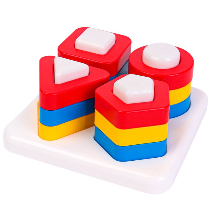Она представляет из себя платформу с четырьмя стержнями на которые необходимо правильно надеть все детали, согласно форме вырезанной внутри них.