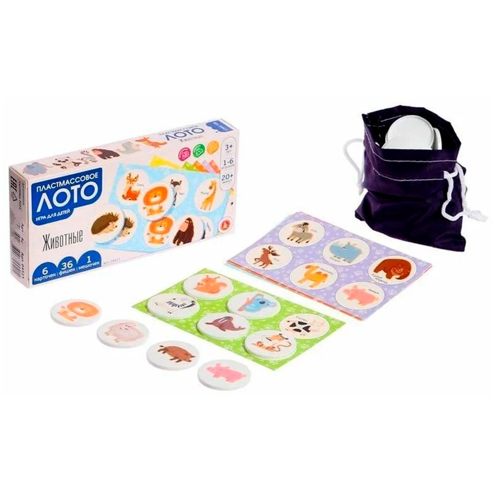 Лото пластмассовое «Животные» позволит в игровой форме познакомить ребенка с разными животными, обитающими на нашей планете.