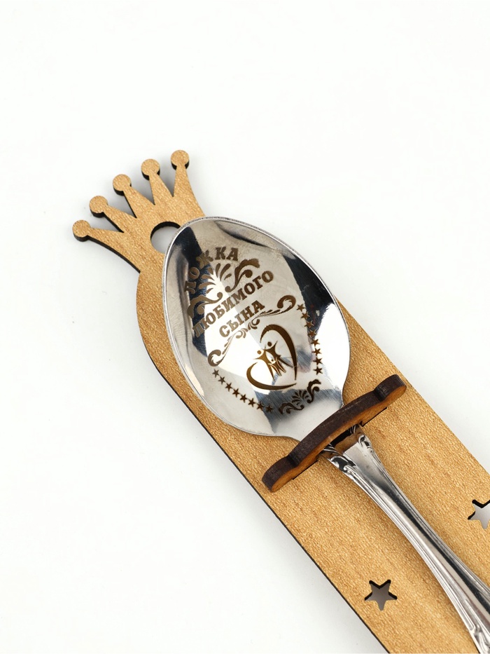 Чайная ложка из нержавеющей стали с гравировкой. Станет отличным небольшим презентом.