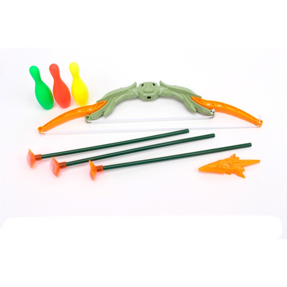 Комплектация: лук - 1 шт., стрела - 3 шт., мишень - 1 шт., кегля - 3 шт., аксессуар