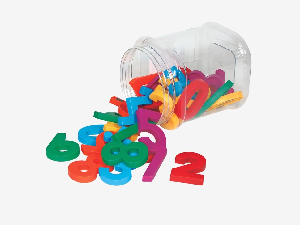 Набор пластиковых цифр высотой 34 мм и знаков математических действий с магнитными вставками. В составе 36 цифр и удобная пластиковая банка для хранения набора.