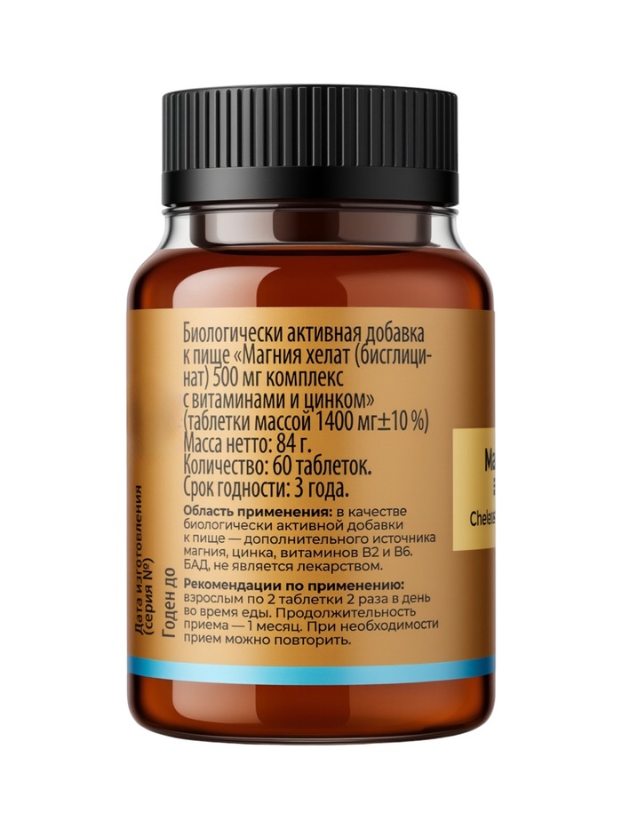 Магний хелат TETRALAB, B6, B2 и цинк, для нормализации работы нервной системы и снятия усталости, 60 таблеток
