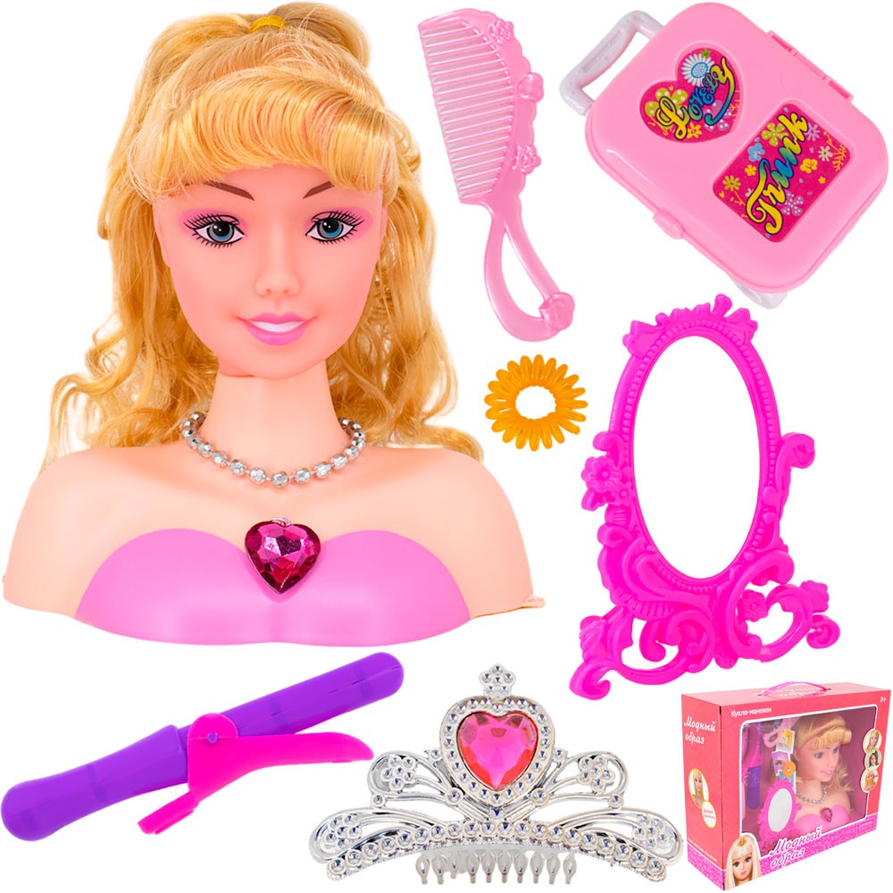 Комплектация: манекен - 1 шт, расческа - шт, зеркало - 1 шт, резинка-пружинка - 1 шт, плойка - 1 шт, диадема - 1 шт, чемодан - 1 шт
