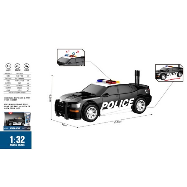 Машина на батарейках WY1151A Полиция свет, звук в кор.