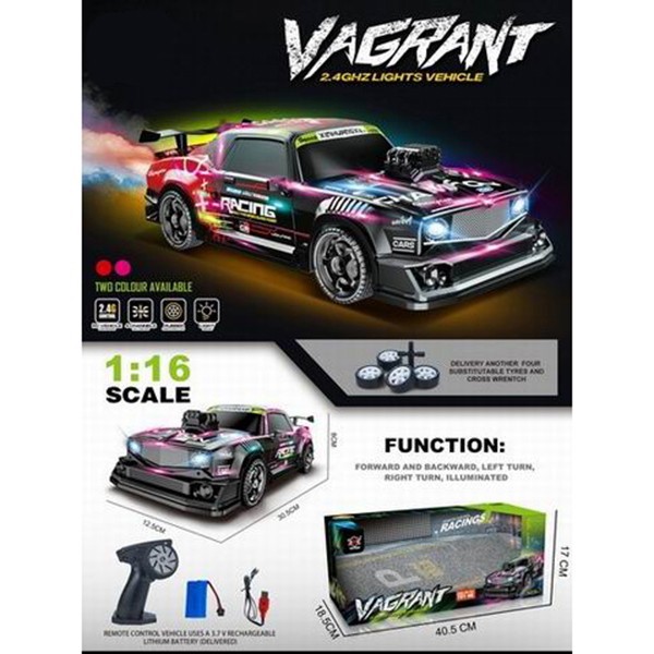 Комплектация: машинка, пульт управления, аккумулятор, кабель для зарядки, колеса - 4 шт, балонный ключ, бутылочка