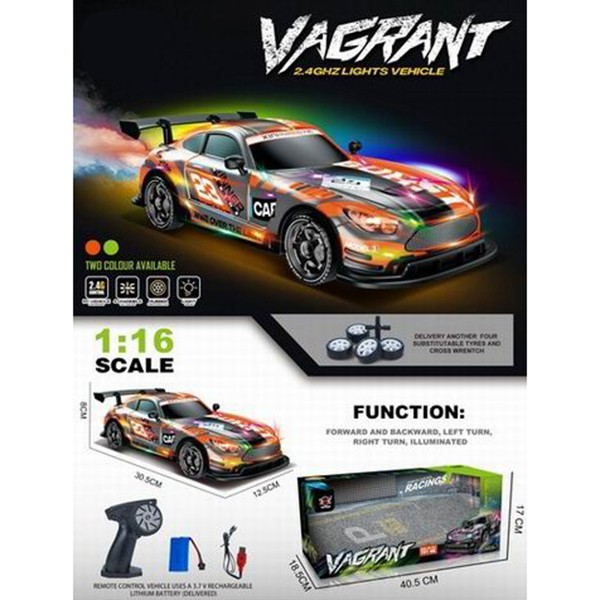 Комплектация: машинка, пульт управления, аккумулятор, кабель для зарядки, колеса - 4 шт, балонный ключ, бутылочка