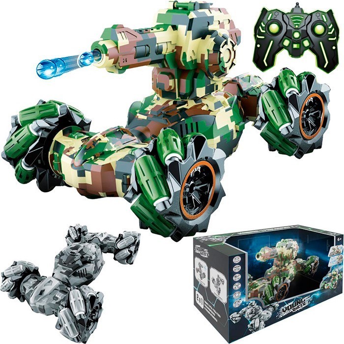 Яркая и мощная машина – трансформер 2 в 1 (танк с водными пулями + трюковой автомобиль) понравится каждому любителю автотехники.