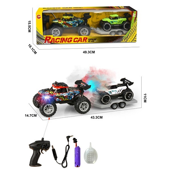 Комплектация: машинка- 2 шт, прицеп - 1 шт, пульт - 1 шт, аккумулятор - 1 шт, кабель для зарядки - 1 шт, бутылочка - 1 шт