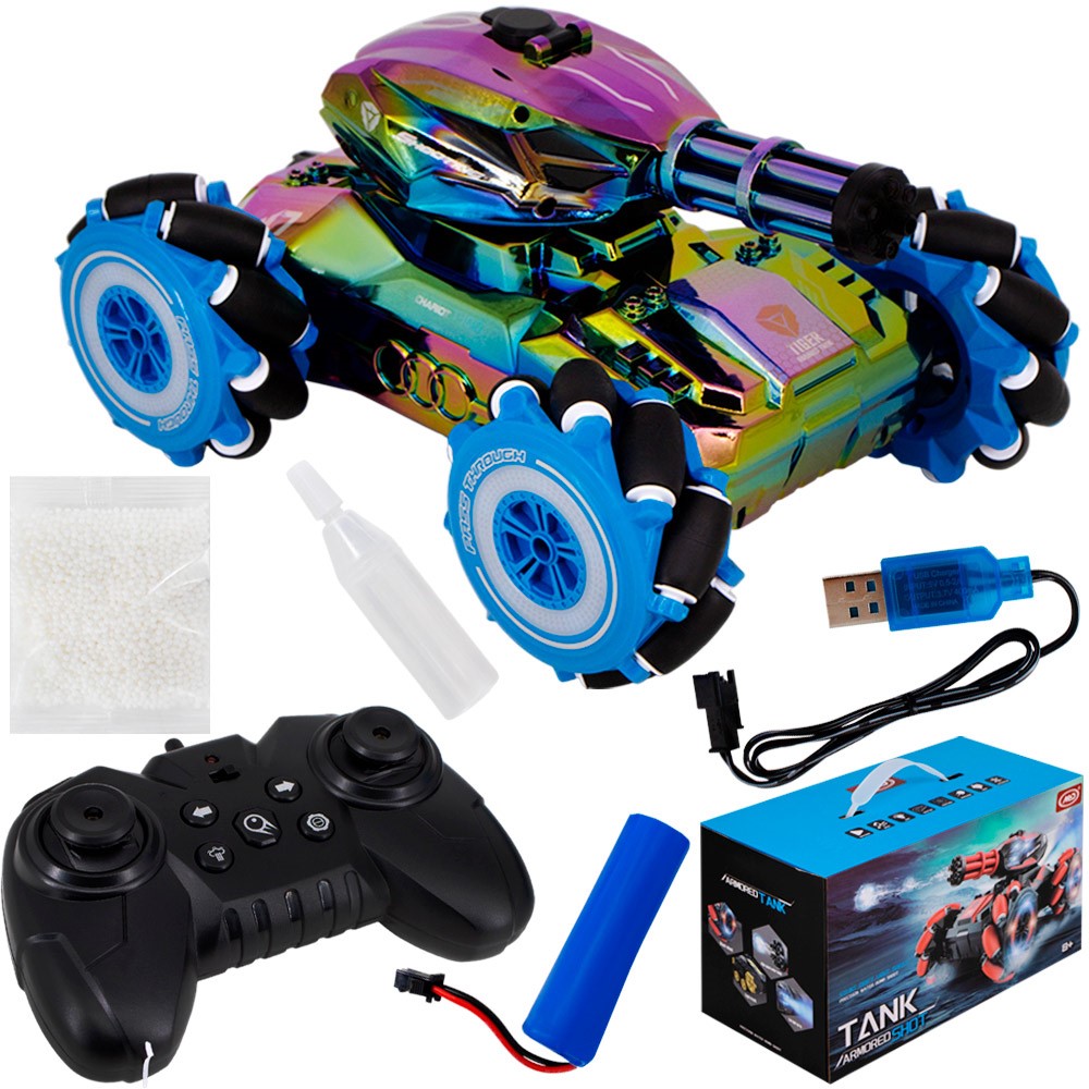 Комплектация: машинка - 1 шт, пульт управления - 1 шт, аккумулятор - 1 шт, пакет полимерных шариков 7мм - 5 шт, бутылочка для воды - 1 шт, инструкция - 1 шт, кабель для зарядки -1 шт
