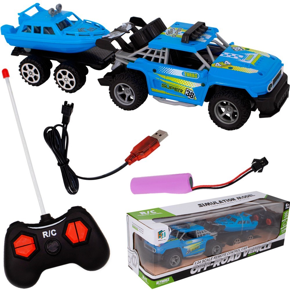 Комплектация: машинка - 1 шт, пульт управления - 1 шт, лодка - 1 шт, аккумулятор - 1 шт, USB кабель - 1 шт