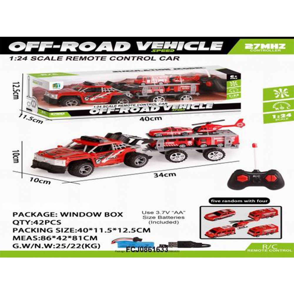Комплектация: машинка автовоз - 1 шт, пульт управления - 1 шт, машинки - 3 шт, вертолет - 1 шт, аккумулятор - 1 шт, USB кабель - 1 шт