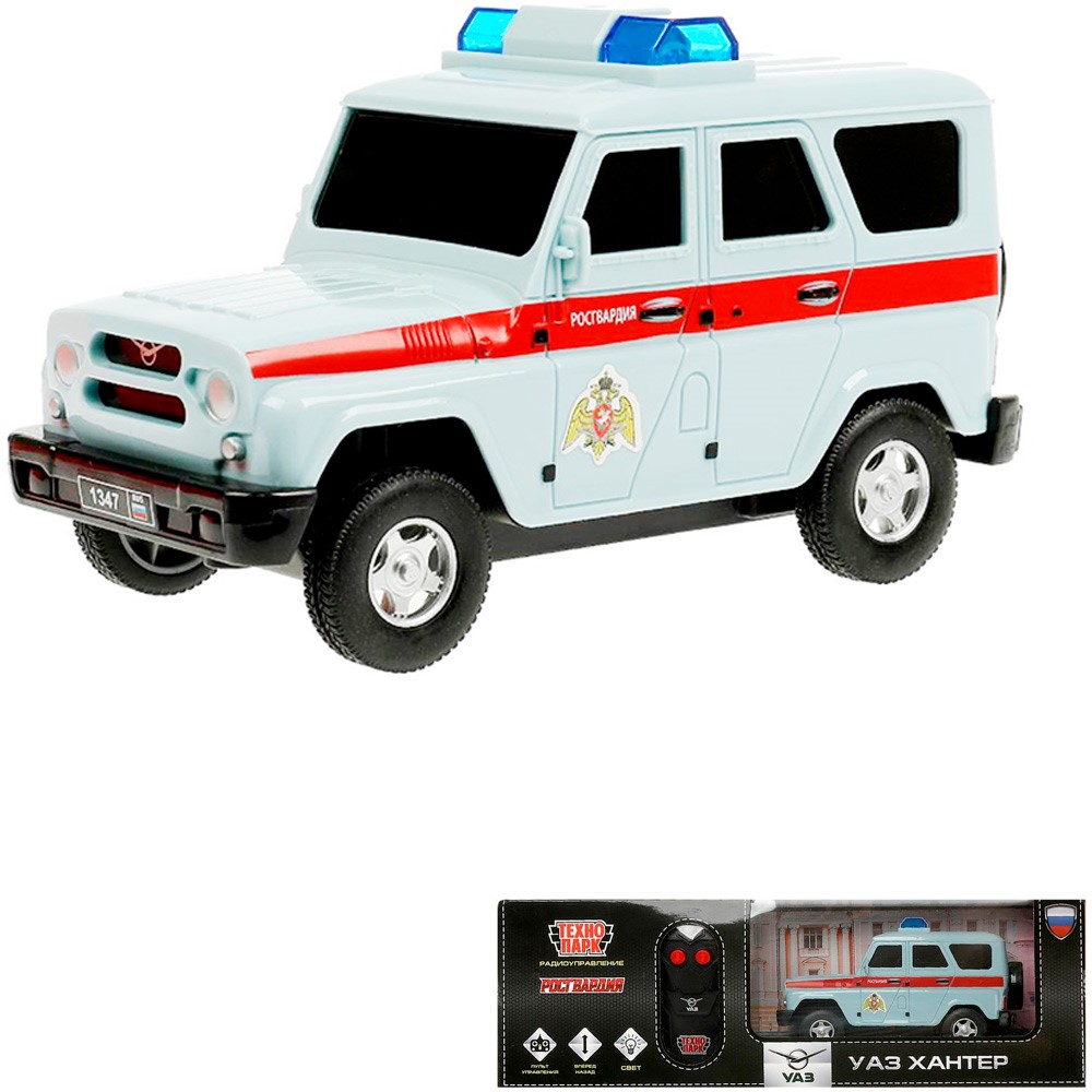 Машина на радиоуправлении HUNTER-15RCROS-GY УАЗ ХАНТЕР РОСГВАРДИЯ 15 см, свет, серый Технопарк в кор /36/