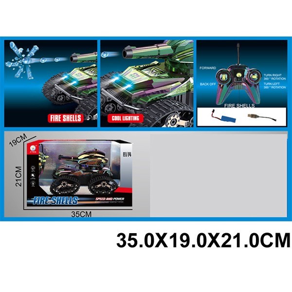 Комплектация: машинка - 1 шт, пульт управления - 1 шт, аккумулятор - 1 шт, кабель для зарядки - 1 шт, пули - 1 уп.