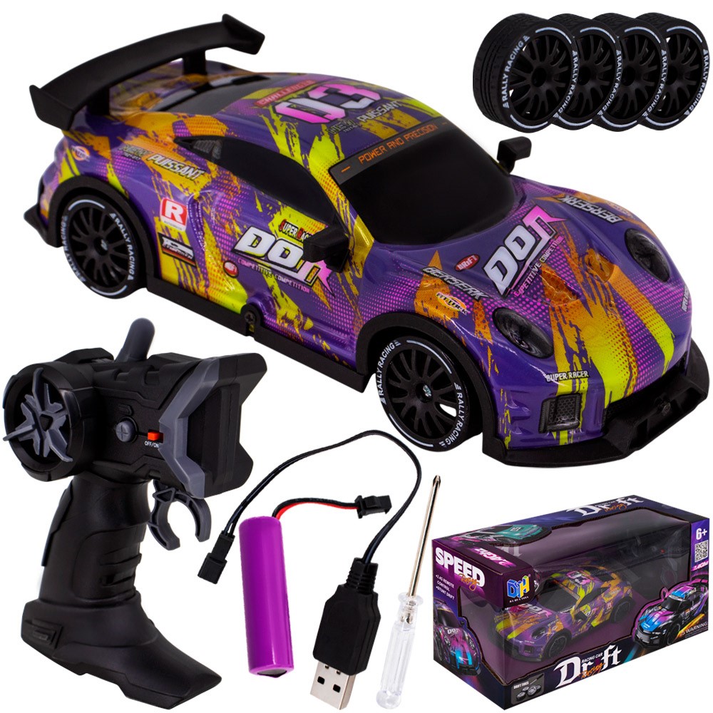 Комплектация: машинка - 1 шт, пульт управления - 1 шт, аккумулятор - 1 шт, кабель для зарядки - 1 шт, колеса - 4 шт, отвертка - 1 шт
