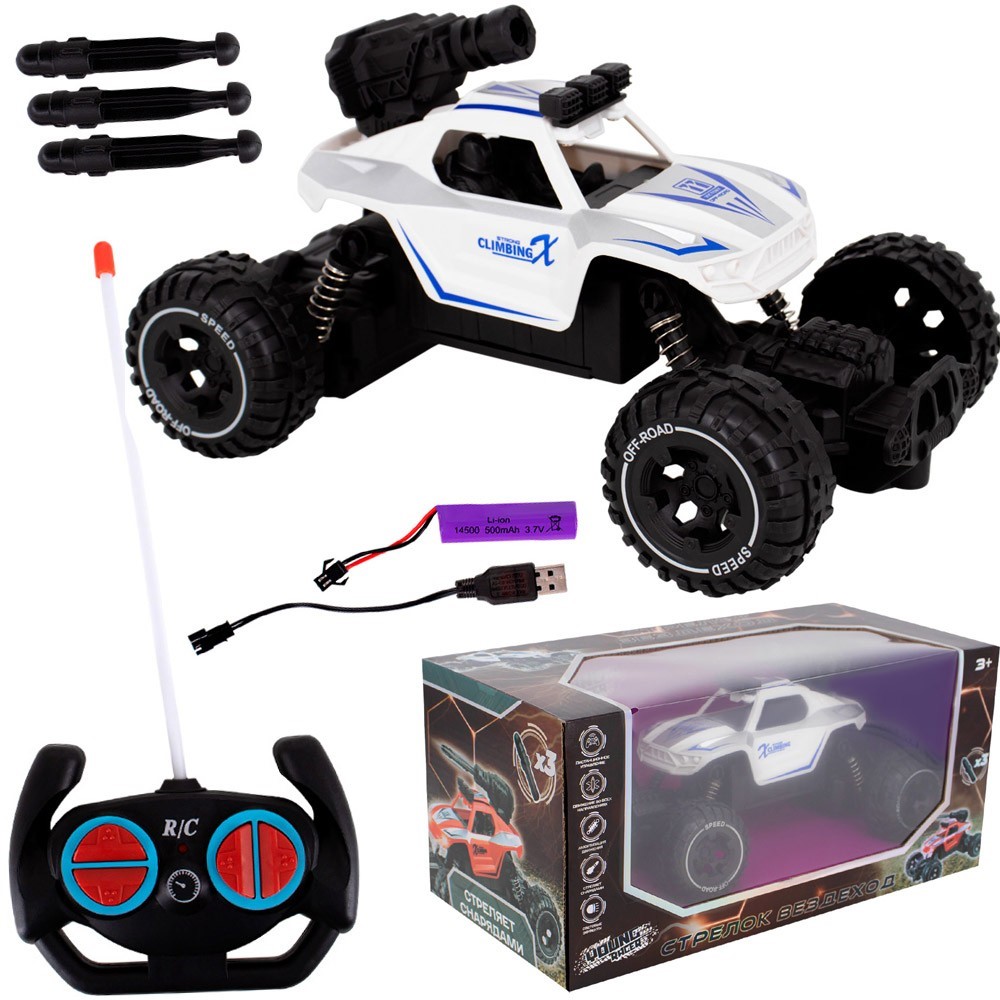 Комплектация: машинка - 1 шт, пульт управления - 1 шт, пули - 3 шт