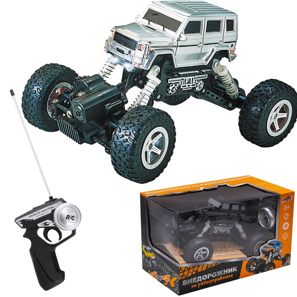Полноприводный внедорожник на радиоуправлении с большими колесами и хорошей детализацией станет одной из любимых игрушек ребенка. С такой машинкой очень весело устраивать гонки по воображаемым трассам, преодолевая небольшие препятствия, возникающие на пути. Автомобиль ездит вперед и назад, влево и вправо. Такая модель станет прекрасным подарком юному любителю автомобилей.