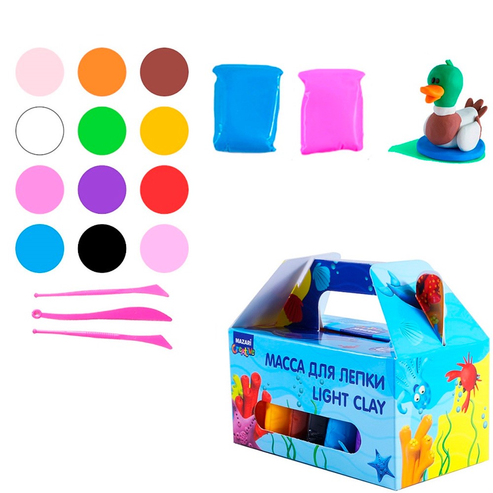 Mасса для лепки 12 цв. 10 гр. пластиковые стеки 3 шт в комплекте M-4196-12B