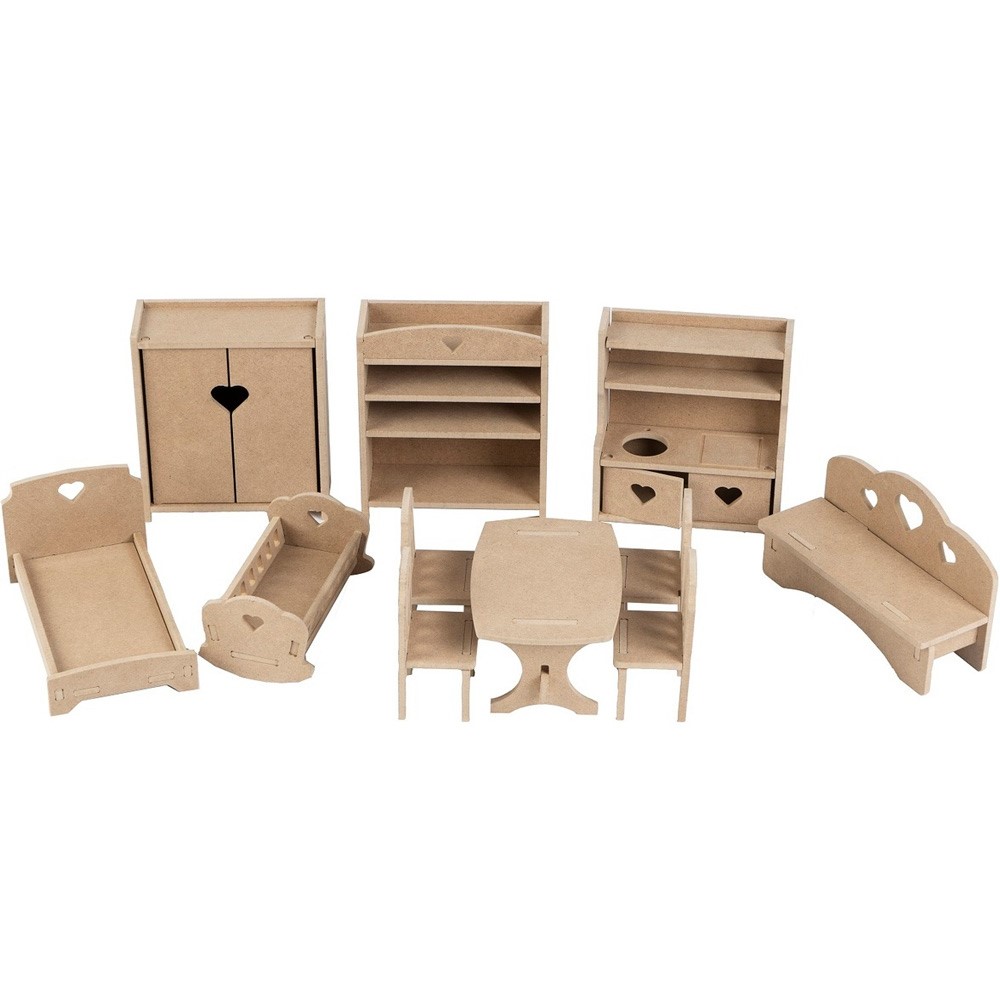 Набор стильной и красивой мебели придется по душе маленьким любительницам кукольных домиков.