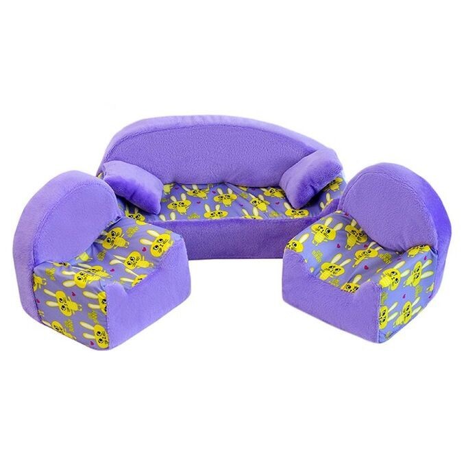 Мебель мягкая Диван+2 кресла+2подушки "Кролики сиреневые" с сиреневым плюшем НМ-002/2-29 СТОК