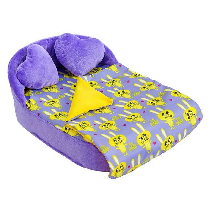 Мебель мягкая Кровать,2 подушки,одеяло."Кролики сиреневые" с сиреневым плюшем НМ-003/4-29 СТОК